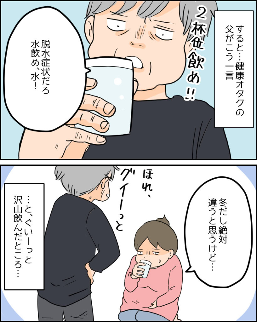 夏以外は脱水症状って起きないものだと思い込みがちですが冬でも結構多いのだなと思いました。