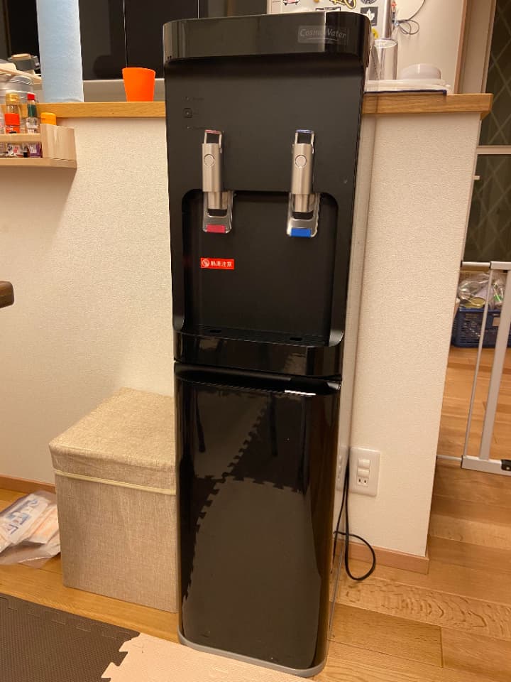 良い点 コスモウォーターのウォーターサーバーを我が家で採用した理由は、使いやすさからです。 美味しい水が冷たいor温かい状態で、押すだけで出て来る手軽さで、採用して良かったなぁと思っています。 そして重たい水を上まで乗っける事をしなくていいのも魅力の一つです。 身長が小さく、力もない私なので友人が使っていたウォーターサーバーのように上に持ち上げて設置するタイプだと大変でしたが、コスモウォーターのサーバーはしたの扉を開けバケツのようなトレイにセットするだけで水の交換ができ、女性でも手軽に使える所です。 | |