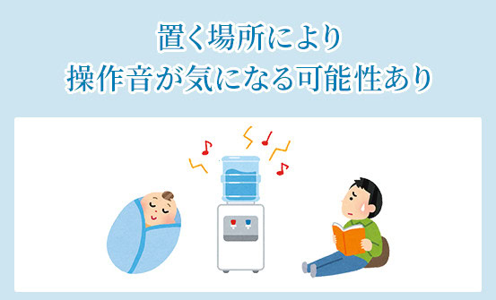 70dB程度の音量自体は操作音のあるウォーターサーバーであれば標準的ですし、音も一瞬なのでうるさくは感じませんでした。