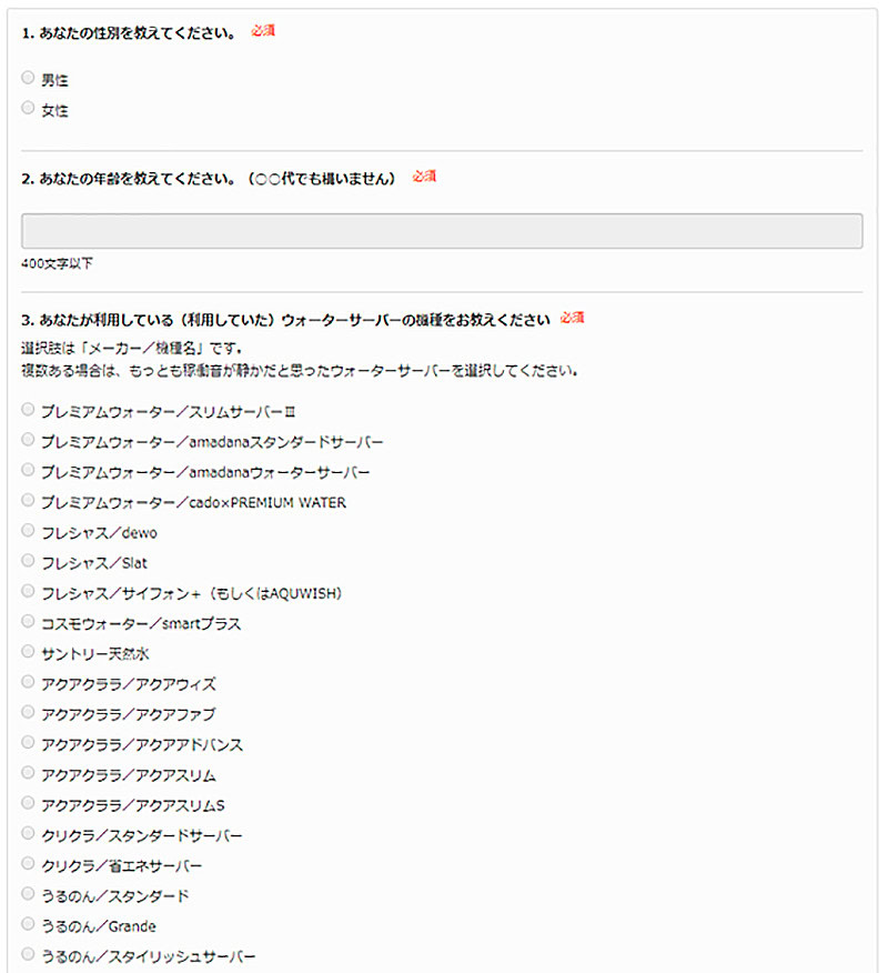 - あなたが利用している(利用していた)ウォーターサーバーの機種をお教えください